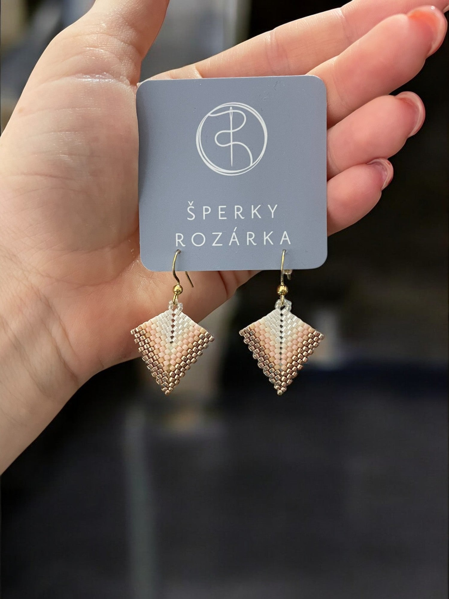 Jemné náušnice ve tvaru šípu jsou šité z japonských skleněných korálků.