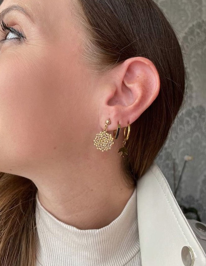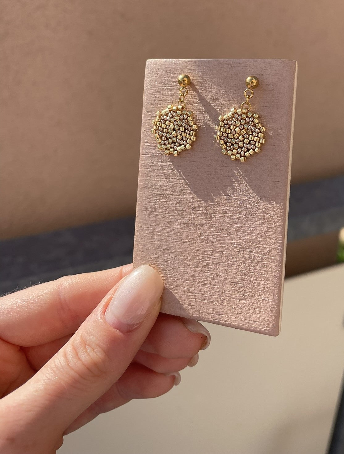 Jemné a elegantní. Univerzální zlaté náušnice ve tvaru malých penízků z japonských korálků MIYUKI.