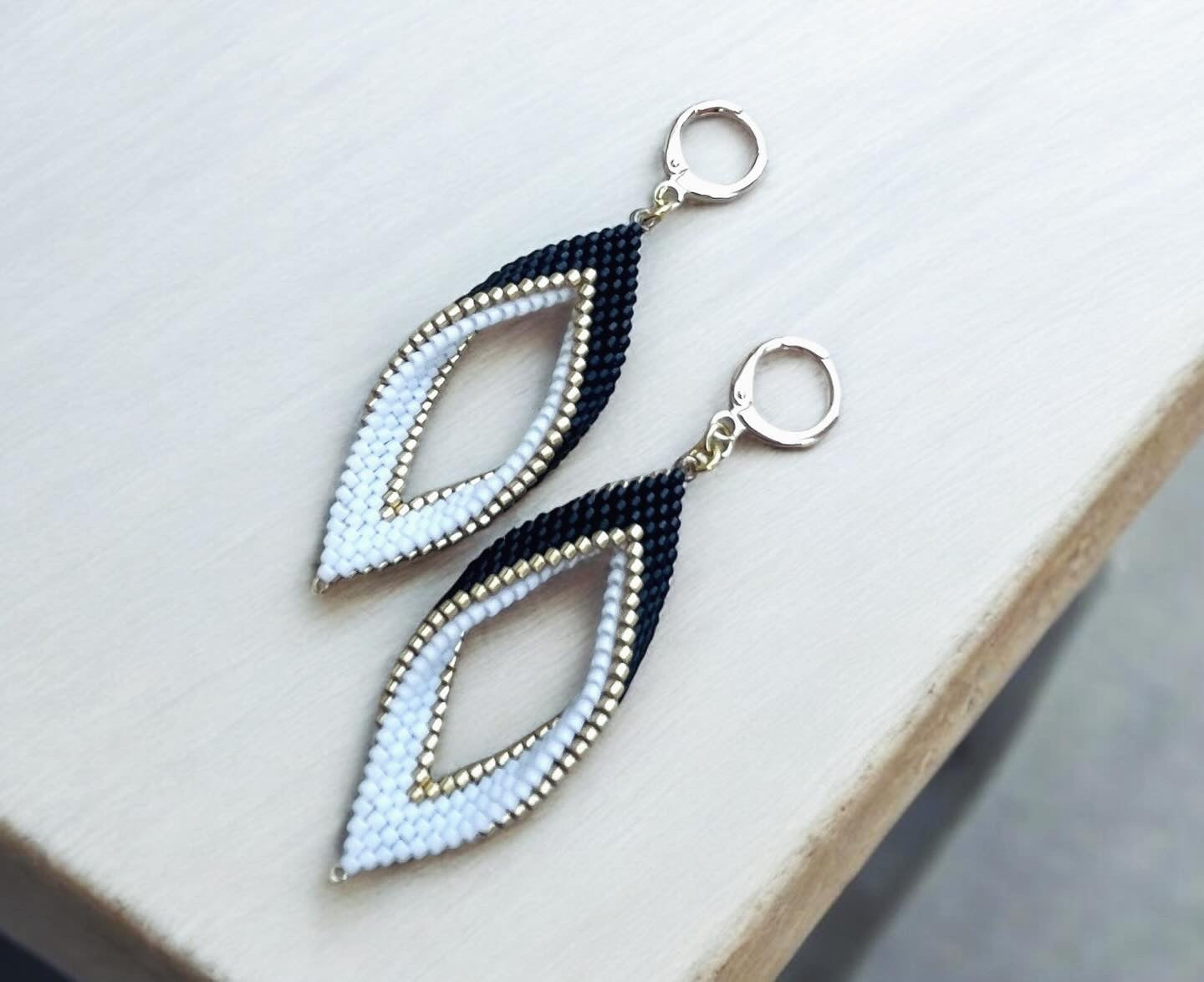 Náušnice ve tvaru kroucených lístků šité z japonských skleněných korálků.