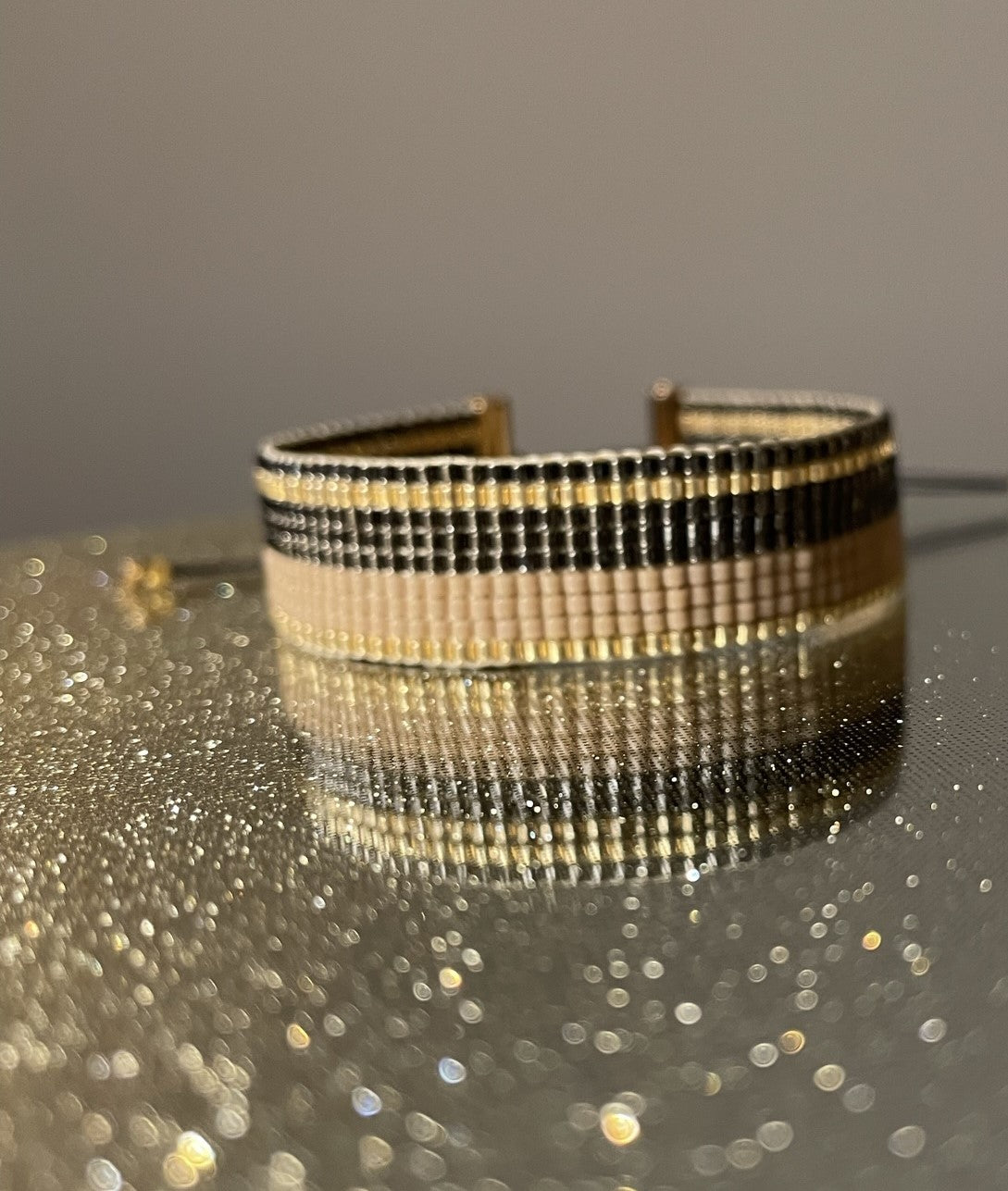 Náramek je tkaný z japonských korálků a kvalitních odolných vláken.