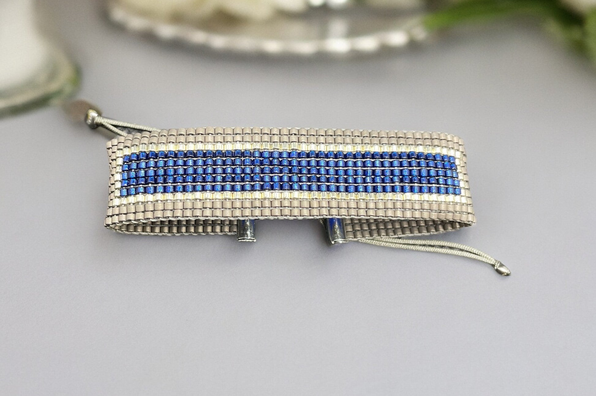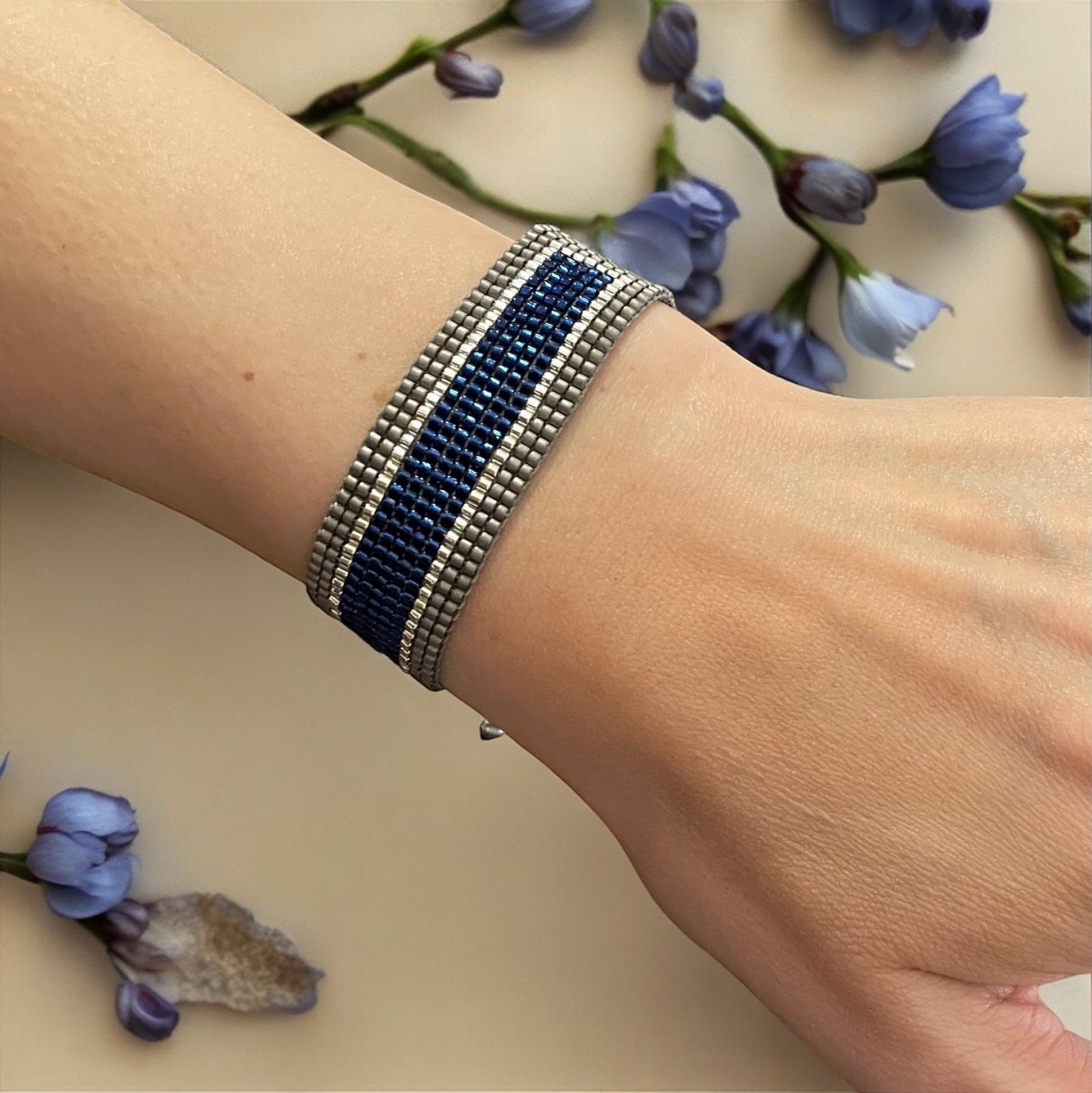 Náramek je tkaný z japonských korálků a kvalitních odolných vláken.