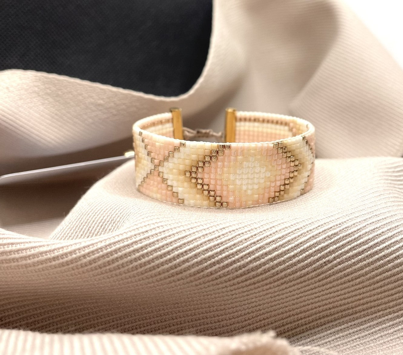 Náramek je tkaný z japonských korálků a kvalitních odolných vláken.