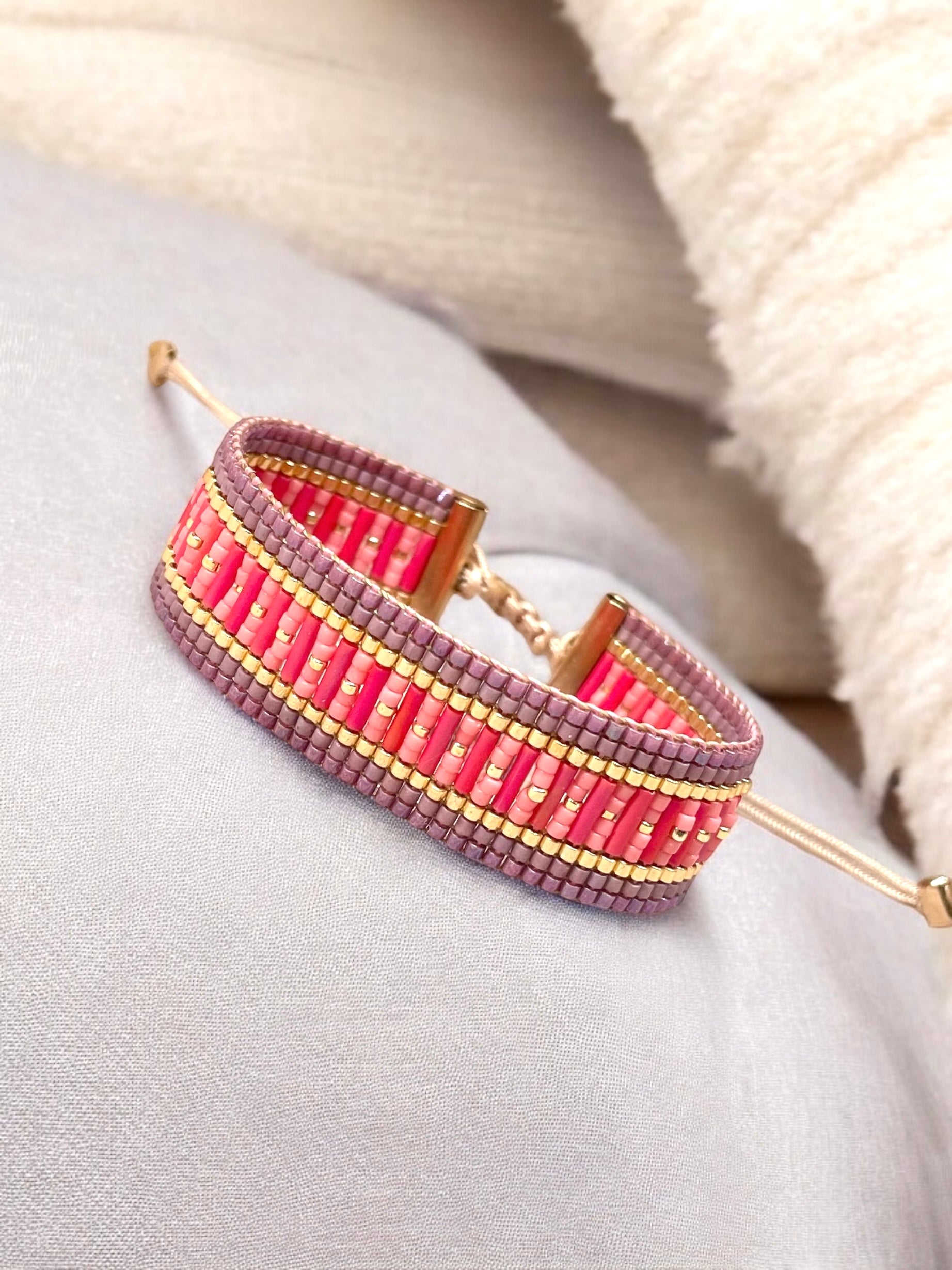 Náramek je tkaný z japonských korálků a kvalitních odolných vláken.