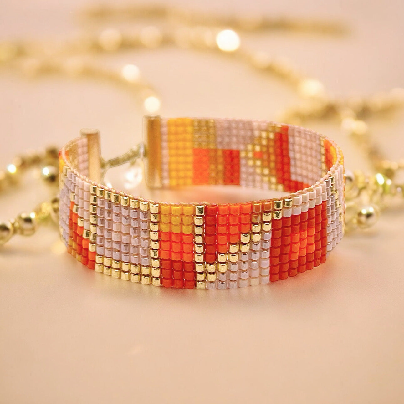 Náramek je tkaný z japonských korálků a kvalitních odolných vláken.