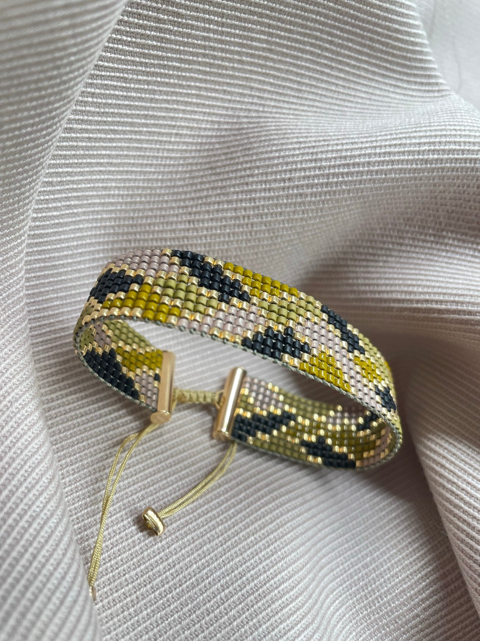 Náramek je tkaný z japonských korálků a kvalitních odolných vláken.